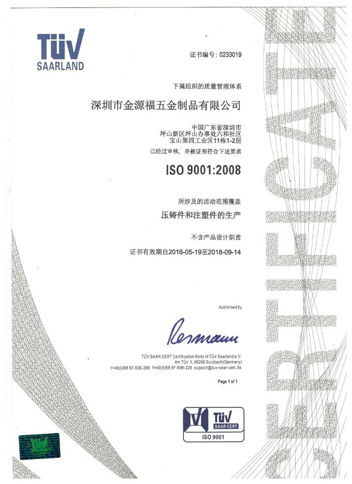 深圳市金源福五金制品有限公司成立于2003年。公司擁有8000多平方米生產(chǎn)廠地、開發(fā)與管理精英人才、技術(shù)專業(yè)、設(shè)備精良、交通便利、服務(wù)周全、具體設(shè)計、開發(fā)、制模、出樣、生產(chǎn)到成品出貨一體化模式生產(chǎn)廠家。已通過ISO9001:2008ISO1440/TS16949:2009國際質(zhì)量體系認證。專業(yè)生產(chǎn)鋅合金壓鑄、鋁合金壓鑄產(chǎn)品、汽車配件、汽車后視鏡支架、車載導(dǎo)航散熱器、LED散熱器、LED燈罩、數(shù)碼電子五金結(jié)構(gòu)件、家具五金裝飾件、標牌(LOGO)等五金壓鑄產(chǎn)品。